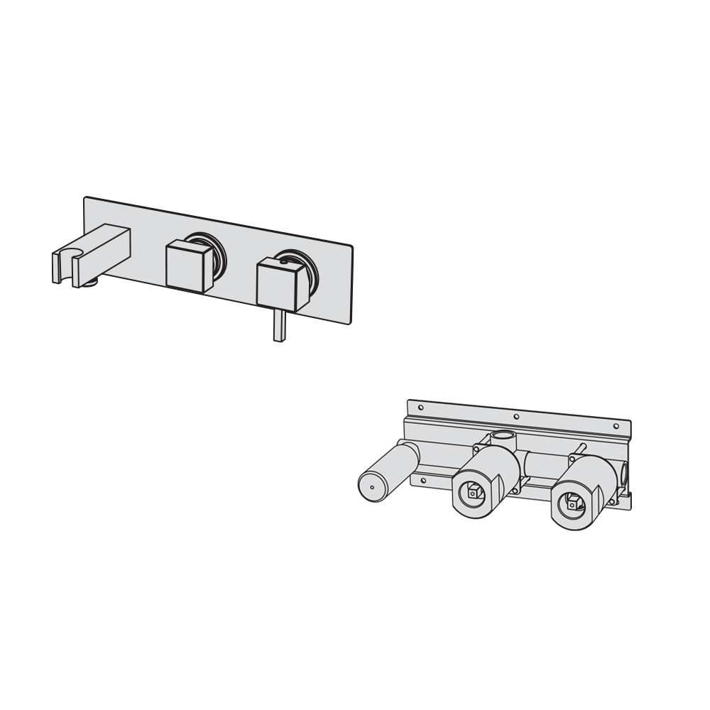 Parte exterior ducha empotrada mecánica con inversor rotativo 2 vías con toma de agua con soporte
