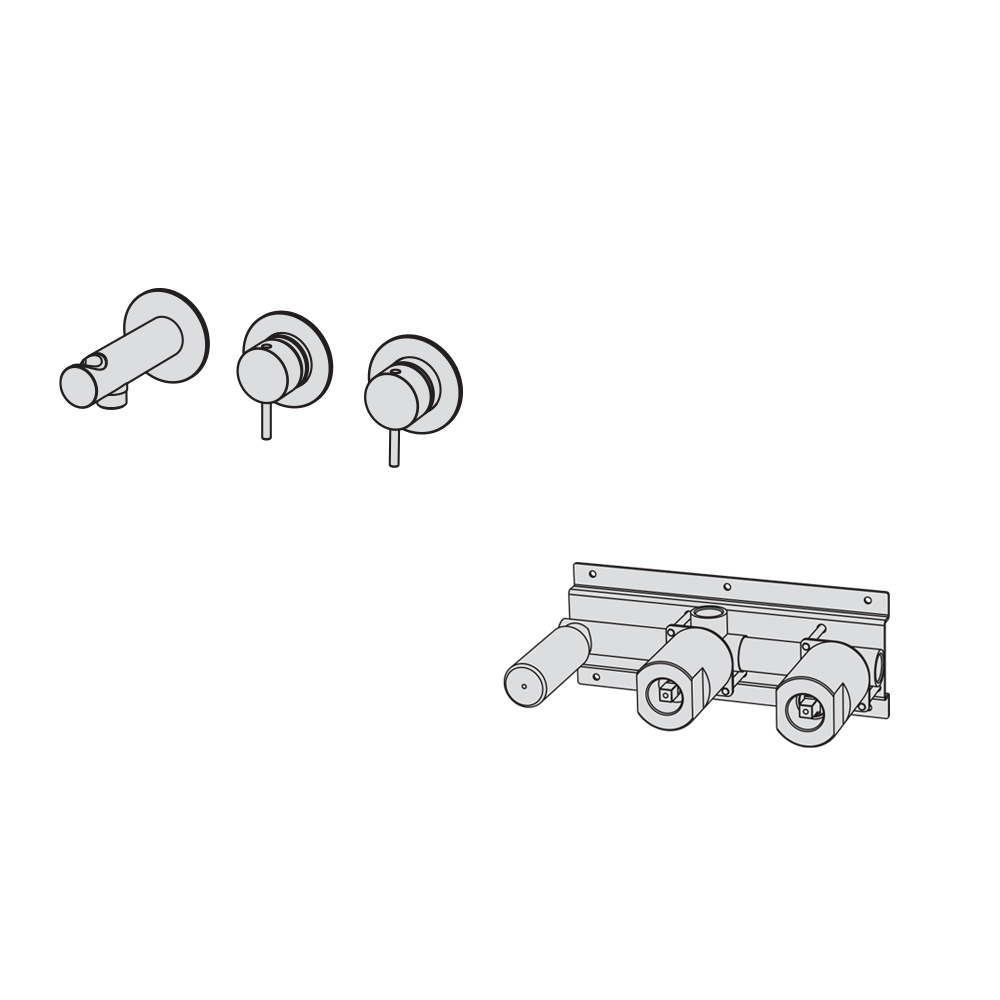Parte exterior ducha empotrada mecánica con inversor rotativo 2 vías con toma de agua con soporte