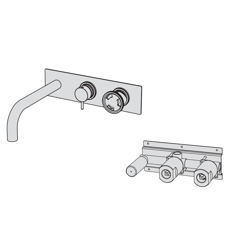 Parte exterior bañera empotrada mecánica con inversor rotativo 2 vías y caño de llenado