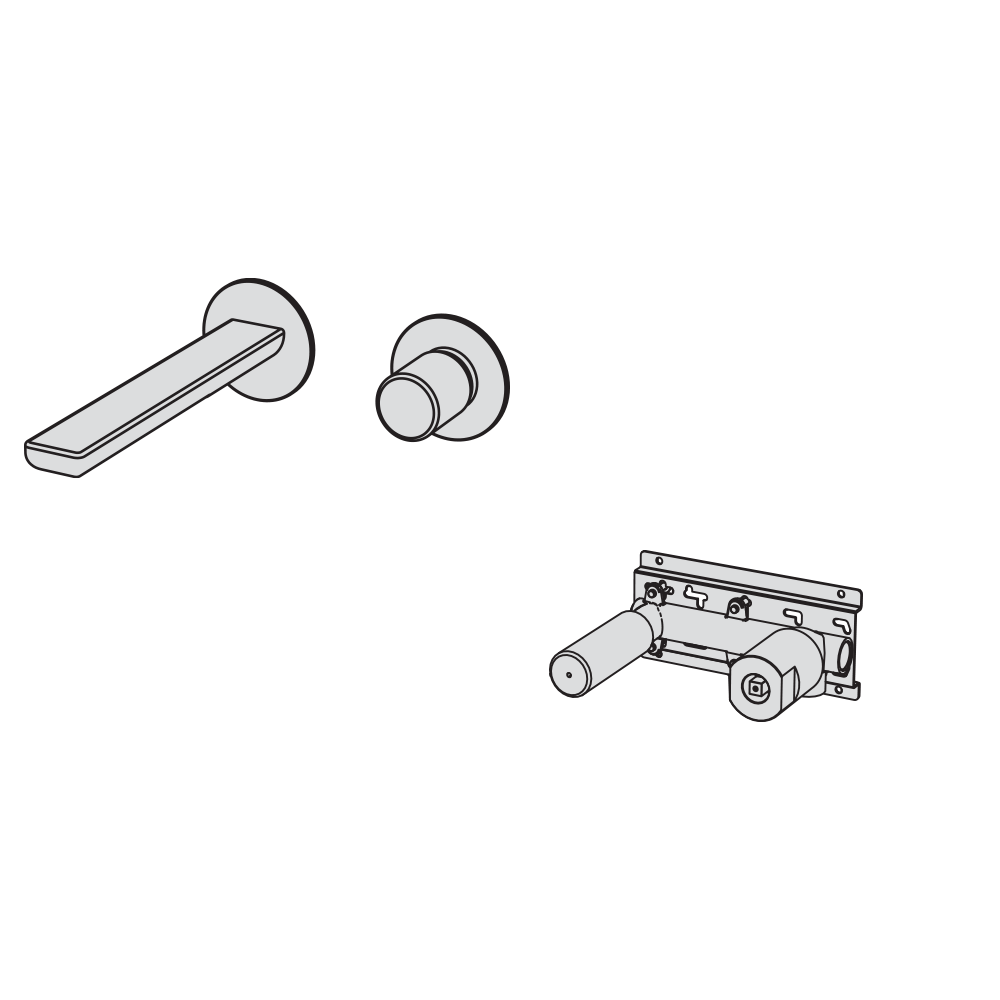 Parte exterior mezclador lavabo dos orificios con caño L=180 mm