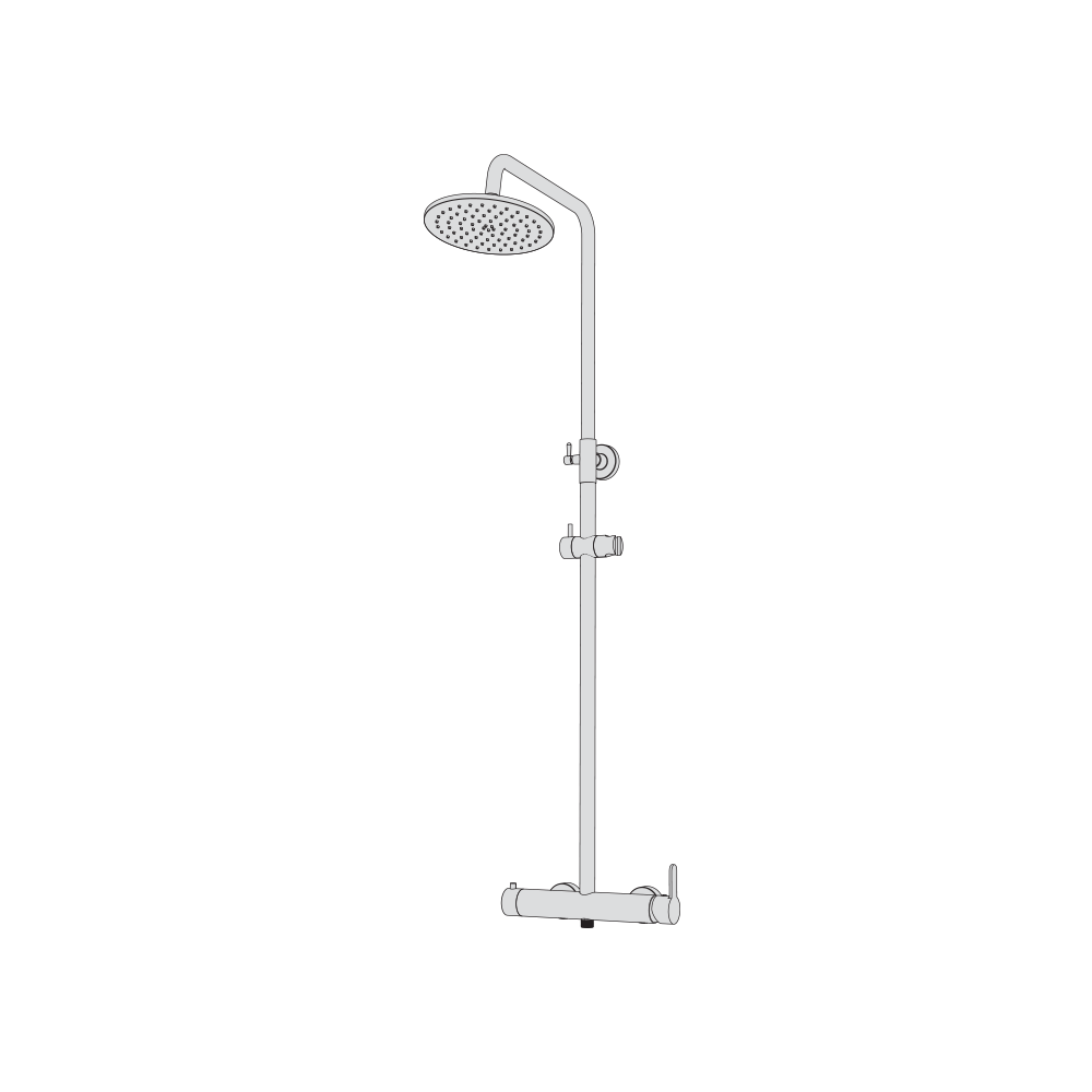 Columna de ducha exterior Bingo mecánica con inversor integrado, barra telescópica y rociador ⌀200 mm