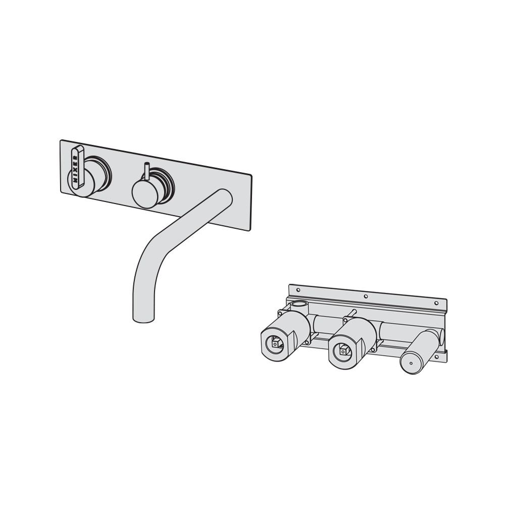 Partie apparente pour mitigeur mural baignoire manuel avec inverseur 2 voies et bec verseur