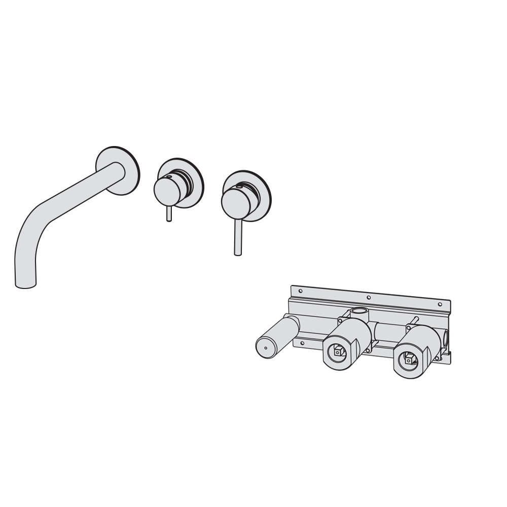 Parte estetica per vasca incasso meccanico con deviatore rotativo 2 vie e bocca di erogazione