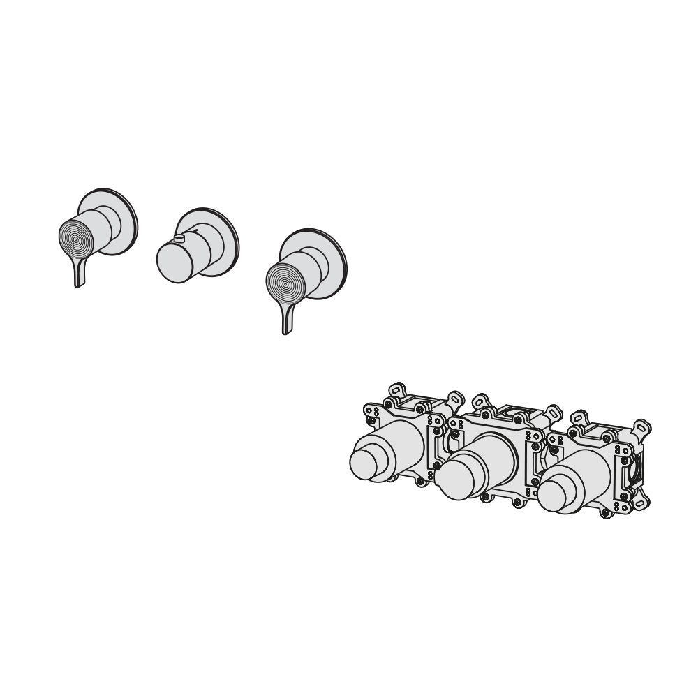Parte estetica per doccia incasso termostatico a grande portata con 2 rubinetti di arresto