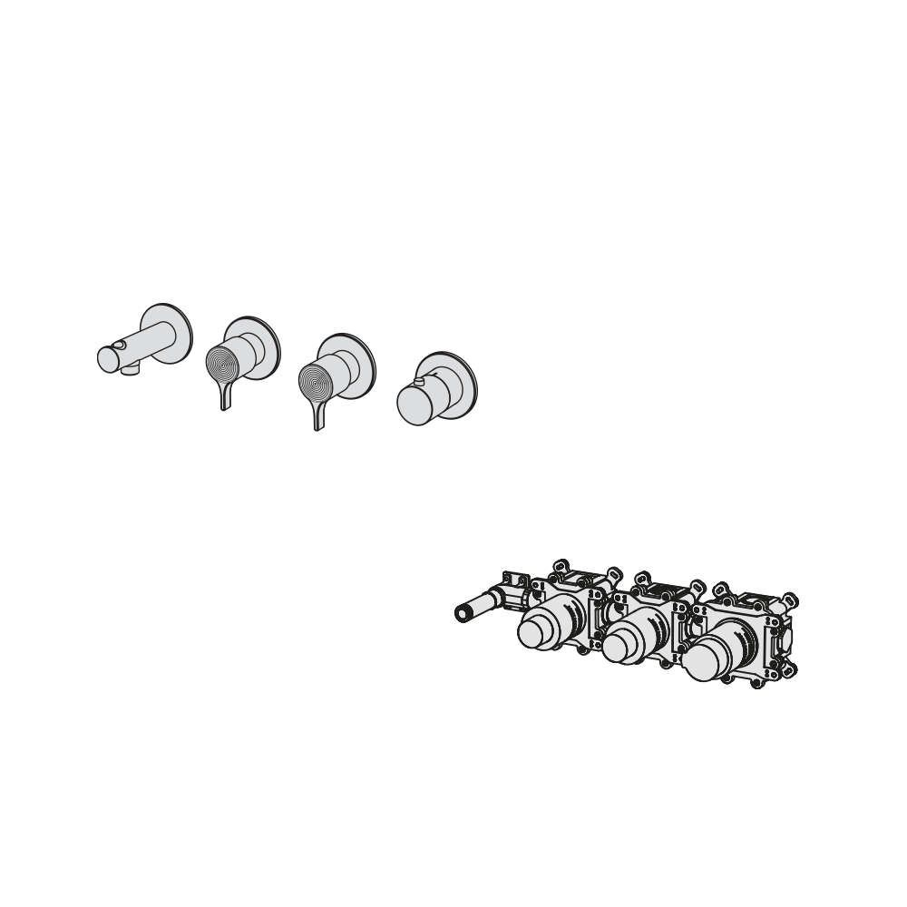 Parte estetica per kit doccia orizzontale termostatico a grande portata a due vie. Da integrare con doccetta e flessibile.