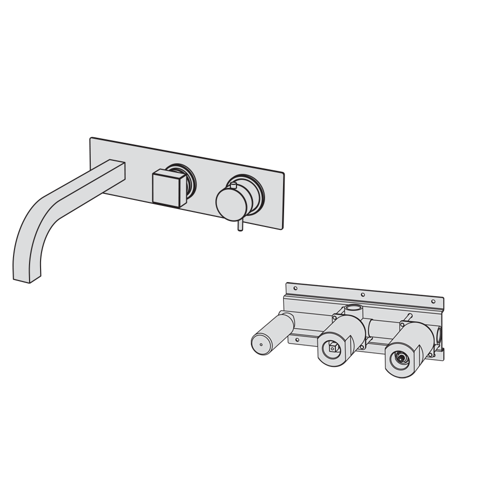 Parte estetica per vasca incasso termostatico con deviatore rotativo 2 vie e bocca di erogazione