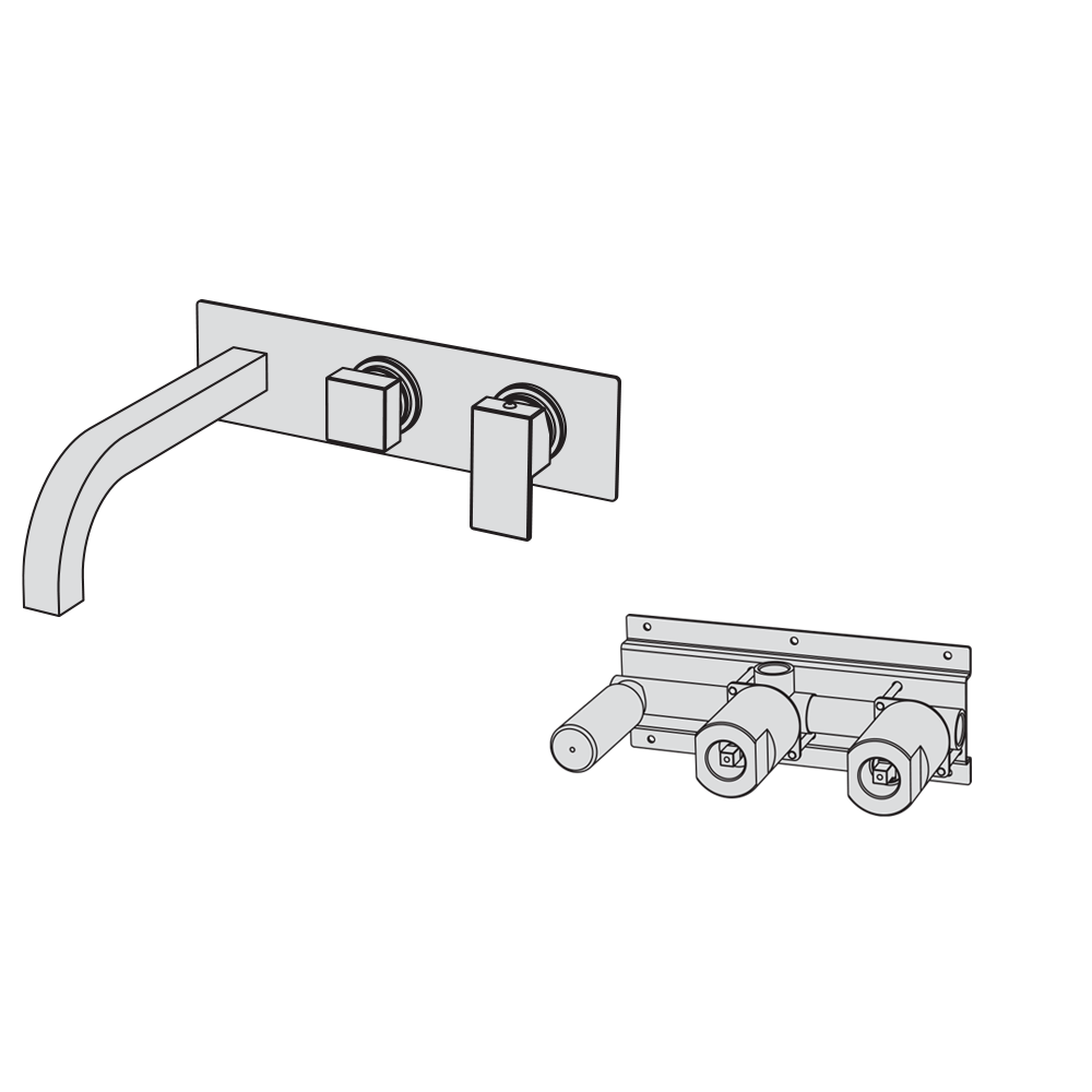 Parte estetica per vasca incasso meccanico con deviatore rotativo 2 vie e bocca di erogazione