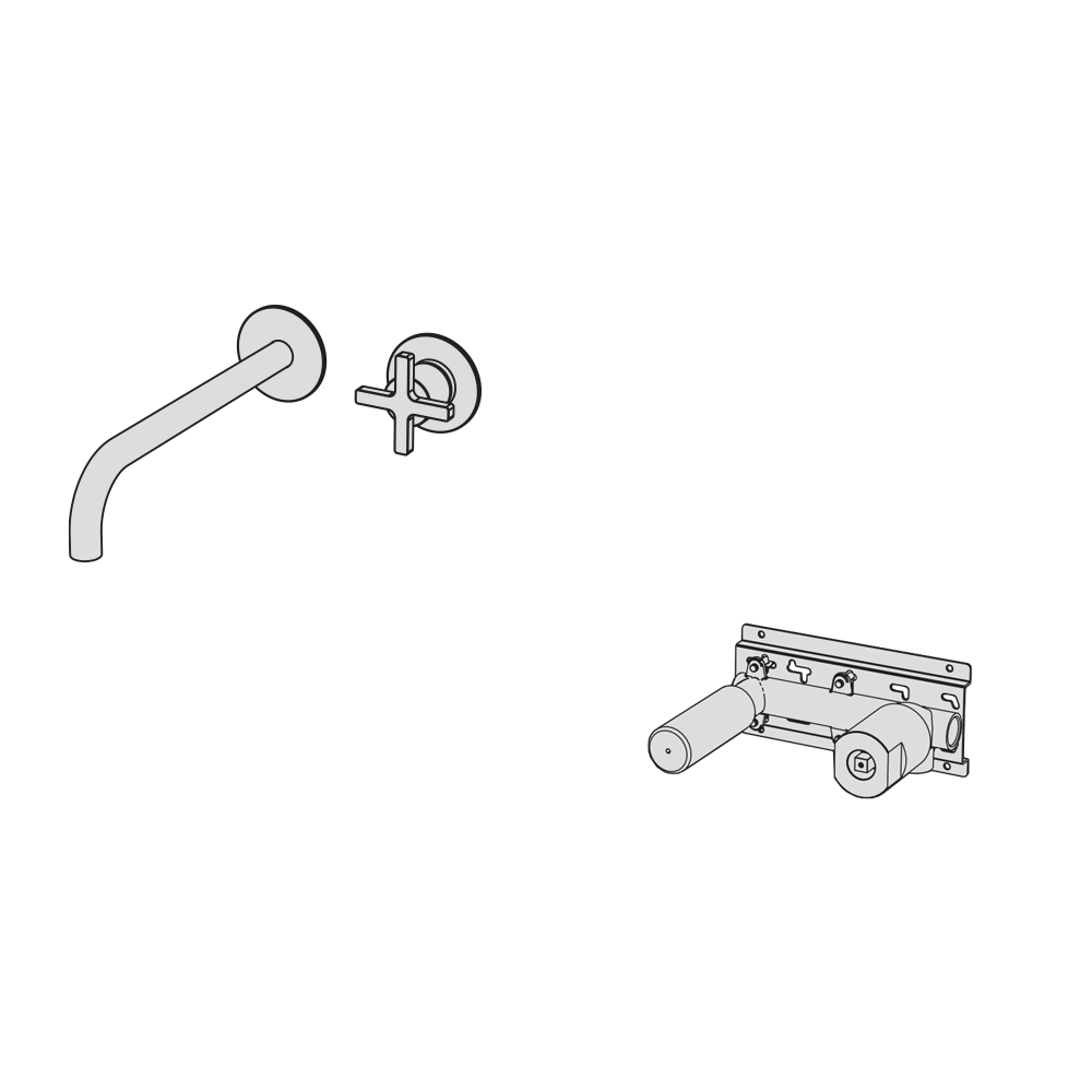 Parte estetica miscelatore lavabo due fori con canna L=250 senza scarico