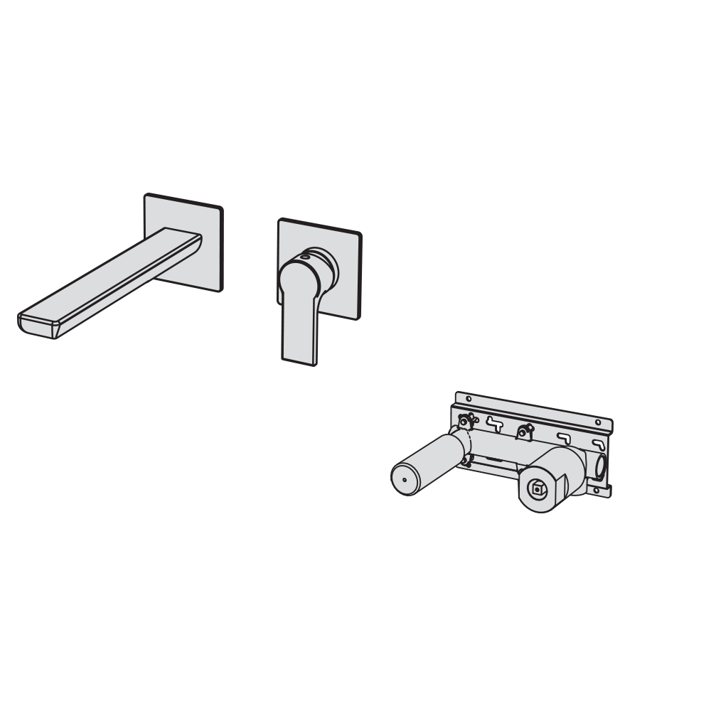 Parte estetica miscelatore lavabo due fori con canna L=180 senza scarico