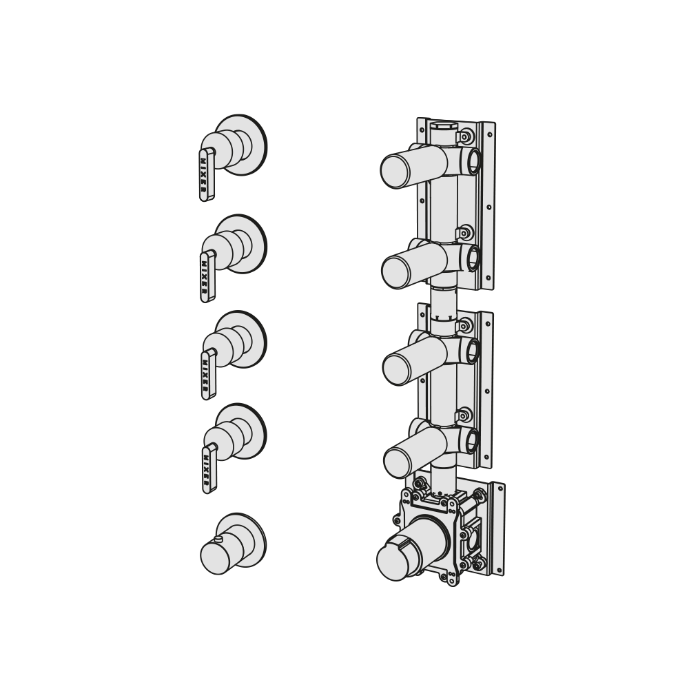 Parte estetica per doccia incasso termostatico con collettore 4 vie a grande portata