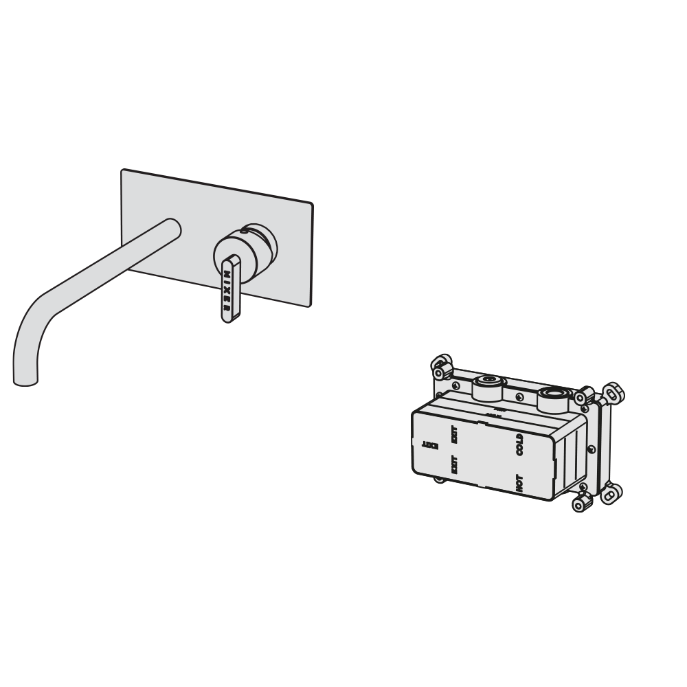 Parte estetica miscelatore lavabo ad incasso canna L=250 mm senza scarico