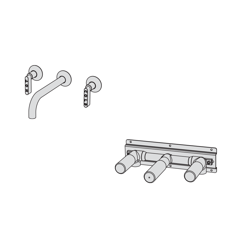 Parte estetica rubinetto 3 fori a parete canna L=190 mm senza scarico