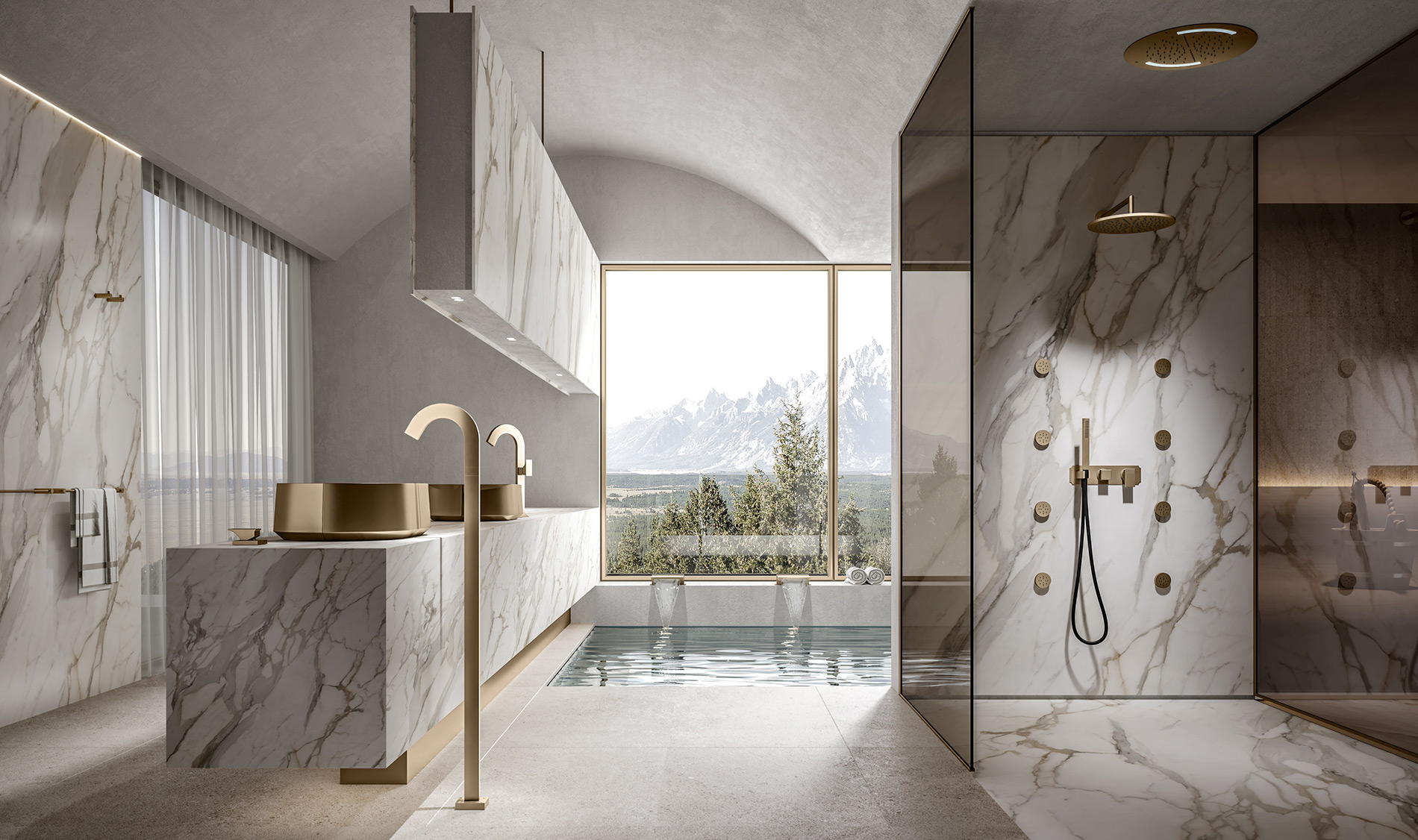 Il fascino di un racconto lontano, che evoca l'esotismo della dorata India dei Maharaja. Una collezione bagno preziosa e unica, in cui lo stile dell'oriente neoclassico si fonde con un gusto raffinato e contemporaneo. Un design che reinterpreta il lusso in chiave moderna, per ambienti sofisticati dall'identità distintiva.