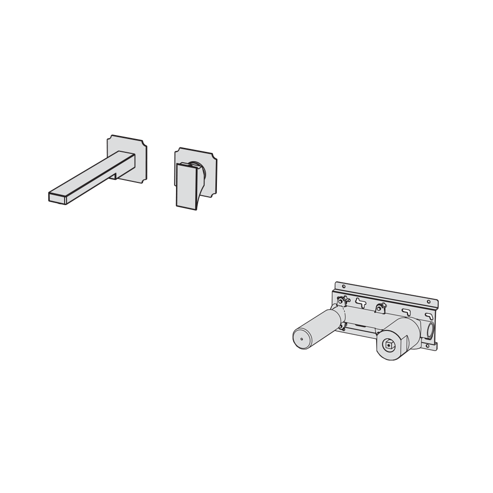 Parte estetica miscelatore lavabo due fori con canna L=190 senza scarico