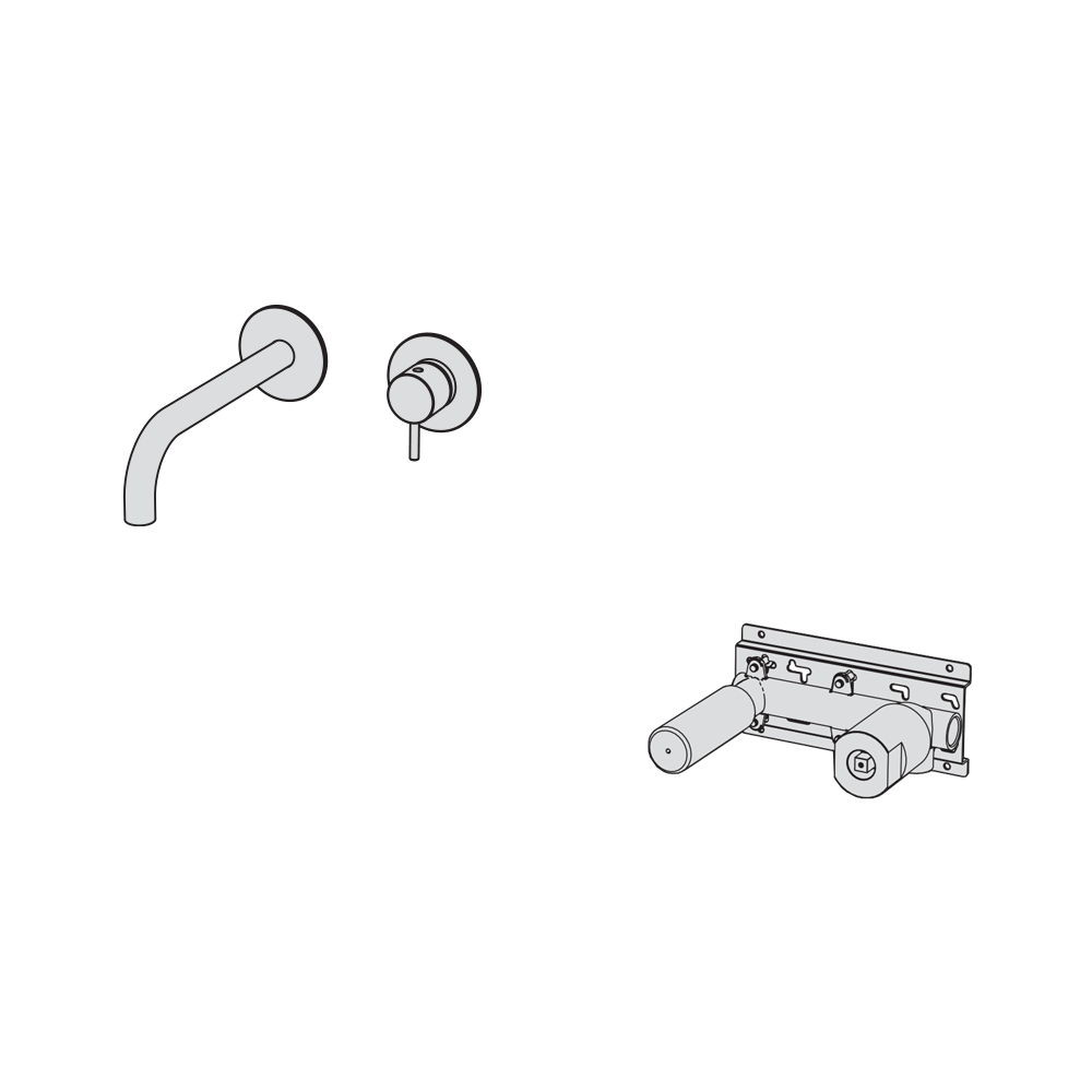 Parte estetica miscelatore lavabo due fori con canna L=190 senza scarico