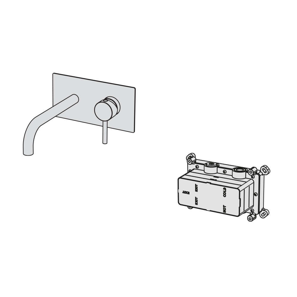 Parte estetica miscelatore lavabo ad incasso canna L=190 mm senza scarico