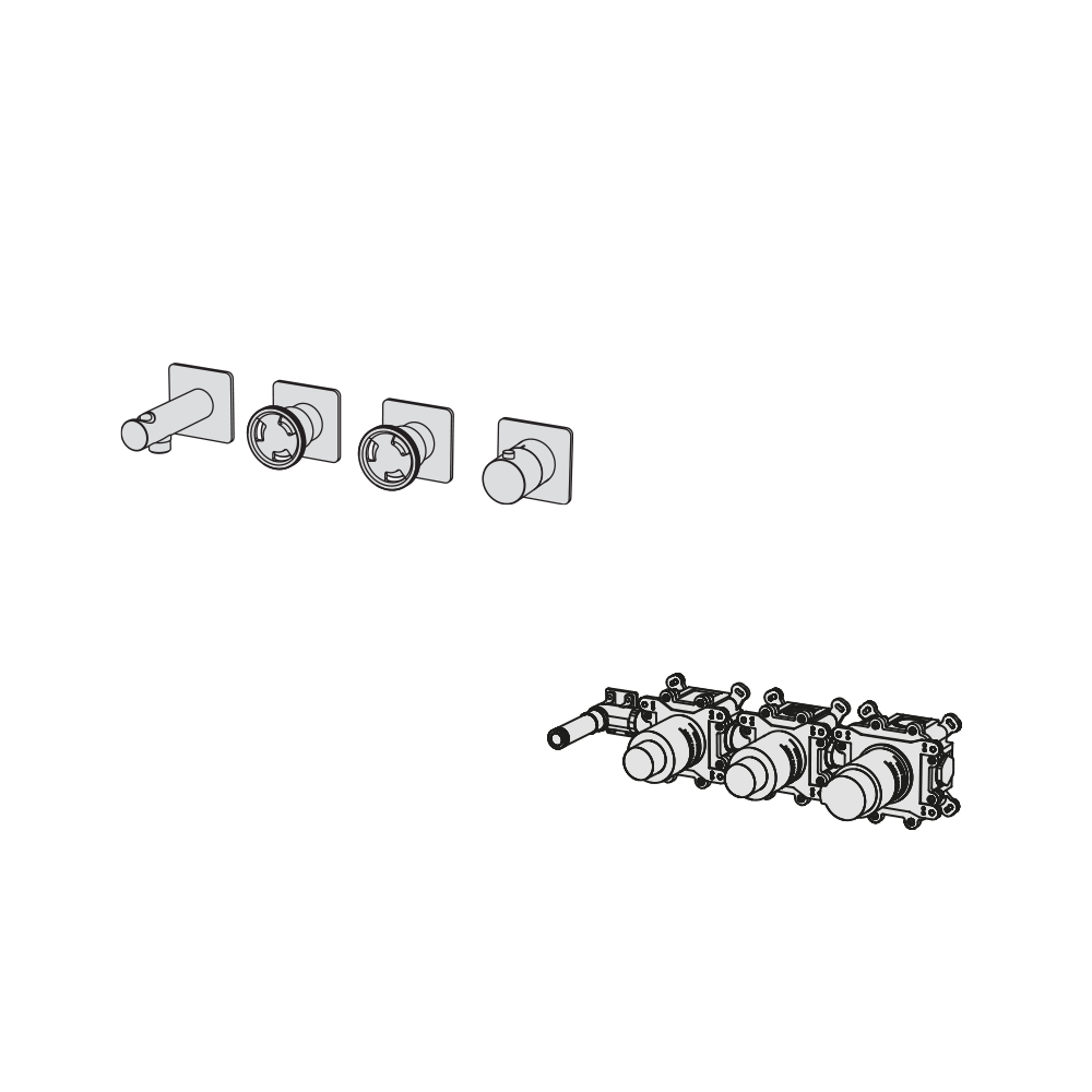 Parte estetica per kit doccia orizzontale termostatico a grande portata a due vie