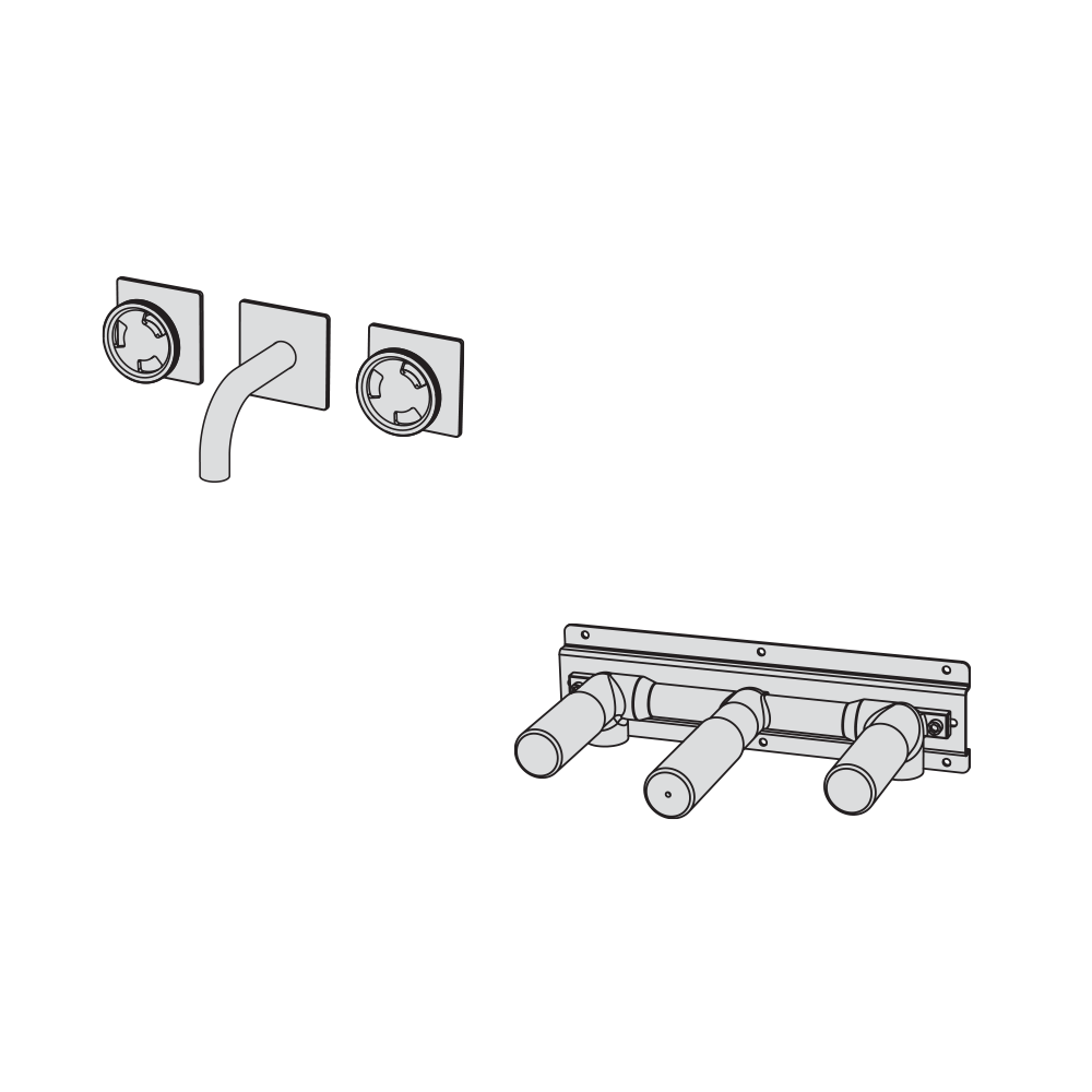 Parte estetica rubinetto 3 fori a parete canna L=250 mm senza scarico