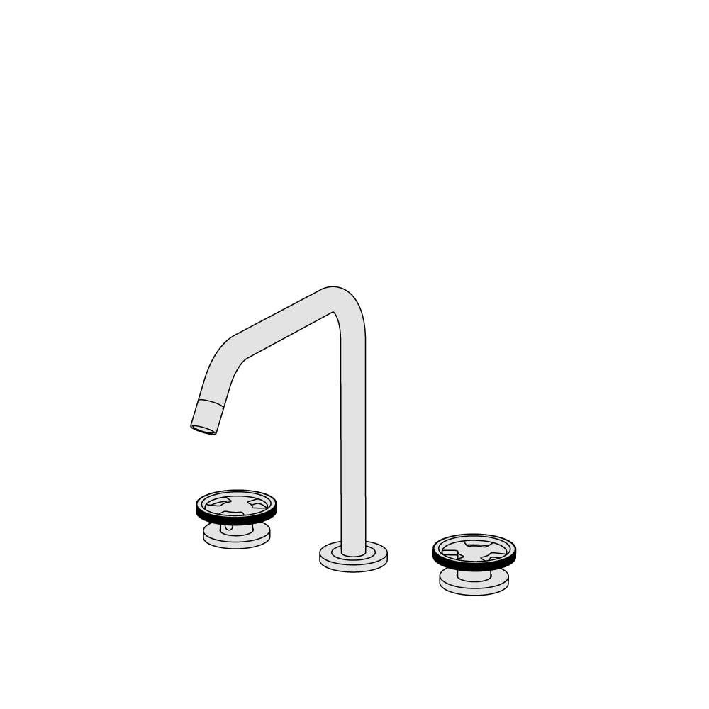 Set per lavabo 3 fori composto da due comandi e bocca di erogazione rialzata senza scarico