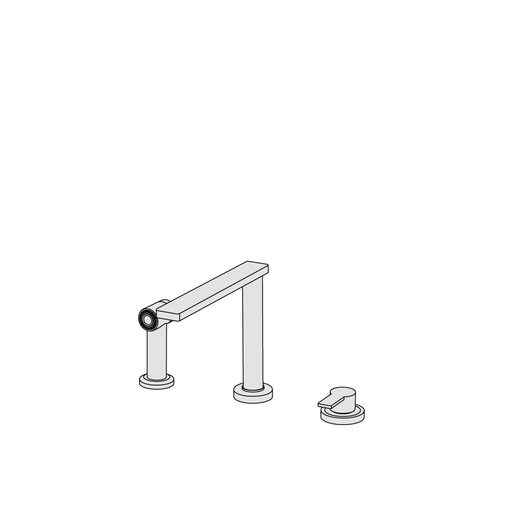 Miscelatore lavello tre fori con bocca girevole abbattibile, comando top e doccetta estraibile