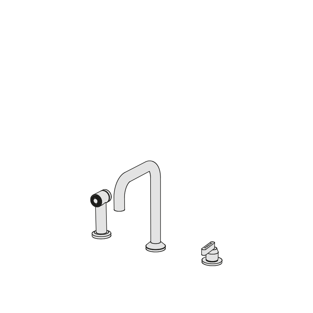 Miscelatore lavello tre fori con bocca girevole, comando top e doccetta estraibile