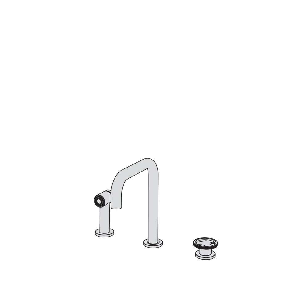 Miscelatore lavello tre fori con bocca girevole, comando top e doccetta estraibile
