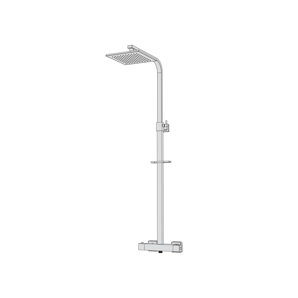Colonna doccia esterna Square termostatica con deviatore integrato, asta telescopica e soffione 200x200 mm