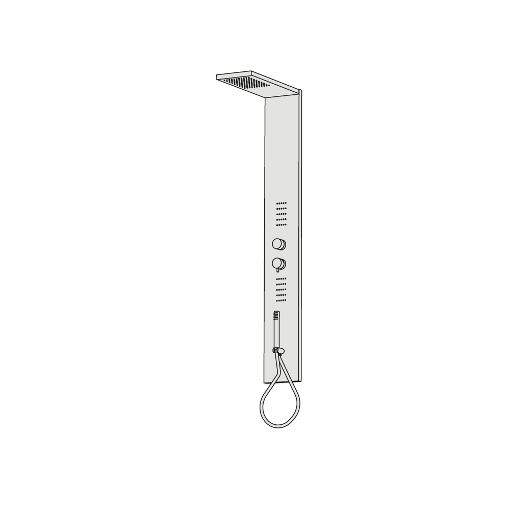 Colonna Yoki meccanica per installazione esterna. Dotata di deviatore 3 vie, bodyjet, soffione, flessibile cm. 150 e doccino