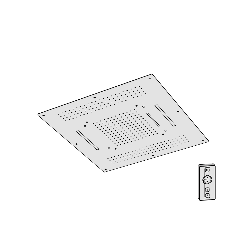 Piastra a soffitto in acciaio inox 430x430 mm con funzione pioggia e cromoterapia e comando remoto touch