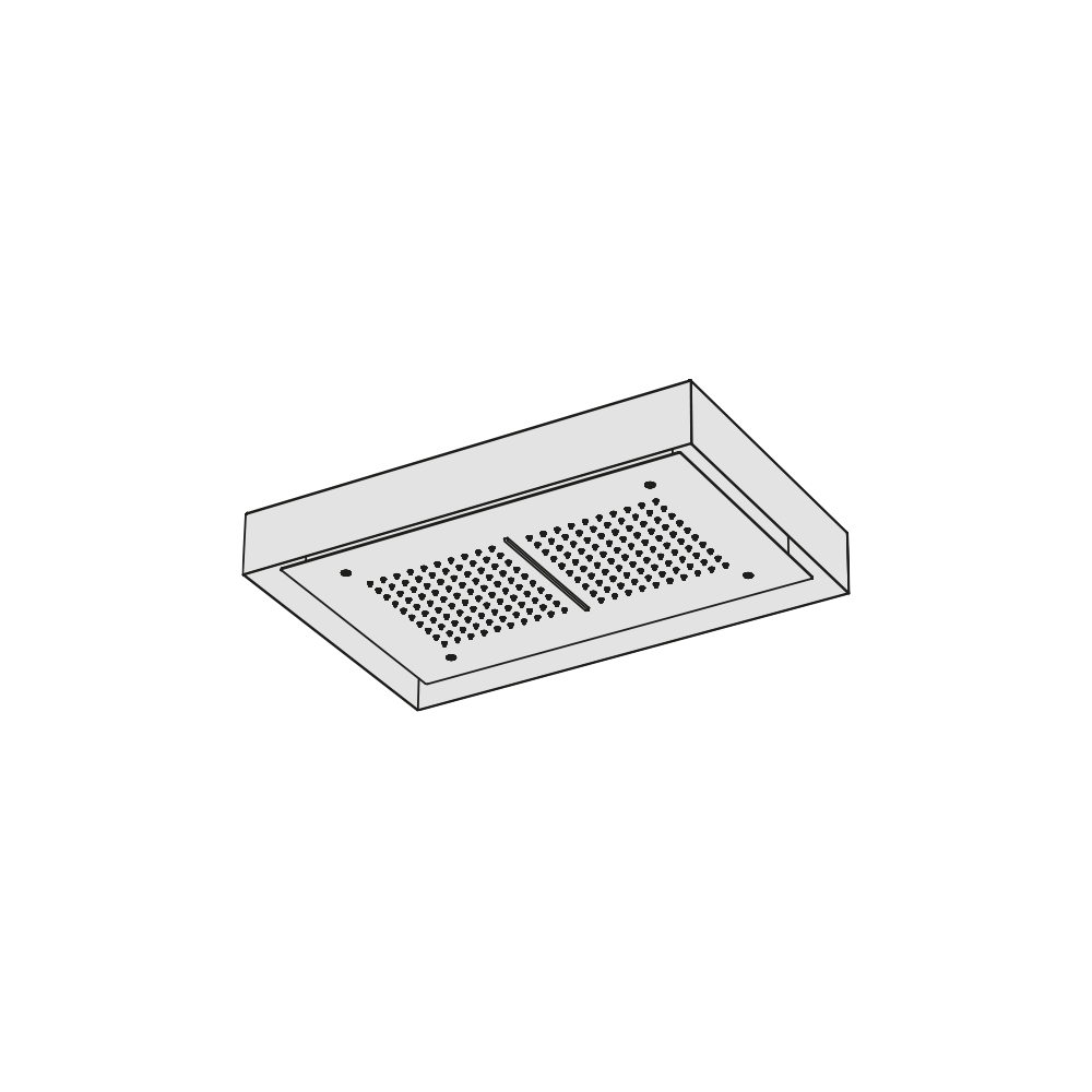 Piastra a soffitto Lys in acciaio inox 570x370 mm con una cascata e pioggia con cromoterapia perimetrale e comando remoto touch