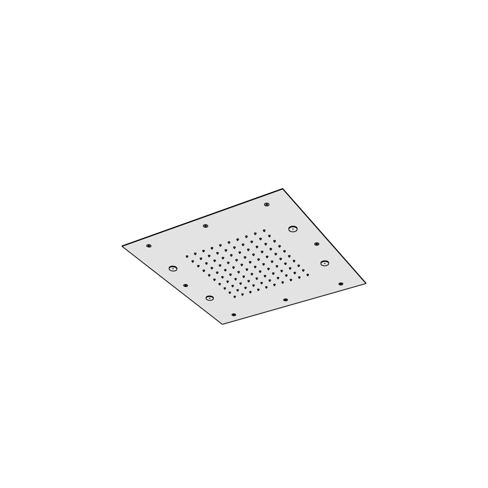 Piastra a soffitto in acciaio inox 500x500 mm con funzione pioggia e nebulizzatori