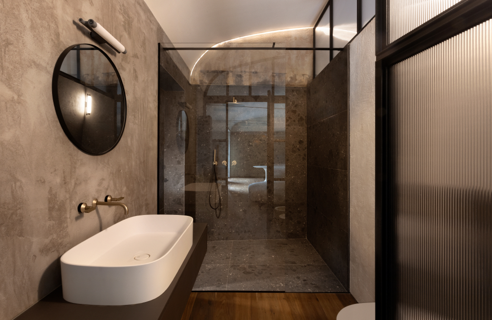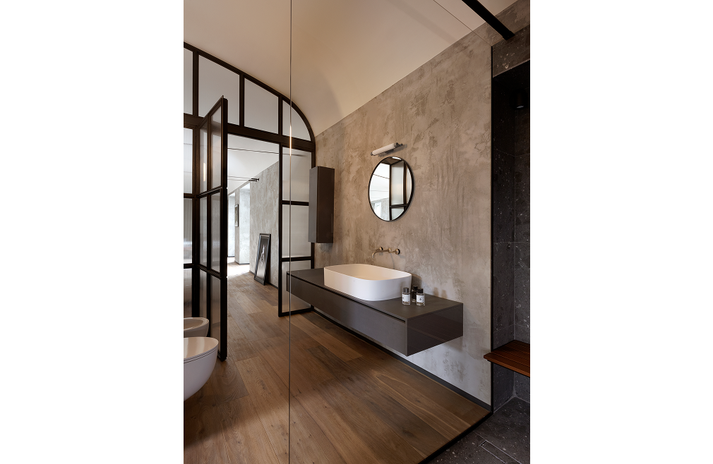 Questo loft di una villa seicentesca rappresenta un sapiente esempio di recupero architettonico e design contemporaneo. Ogni dettaglio, dai materiali alle soluzioni progettuali, è stato pensato per creare uno spazio unico, capace di affascinare e accogliere con stile. Con Koè di Geda, il bagno diventa naturale prosecuzione dell’architettura, interpretando l’estetica industriale in chiave contemporanea.