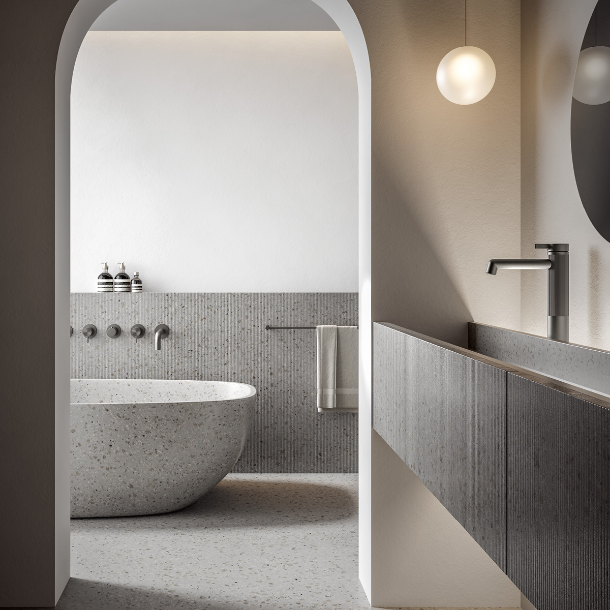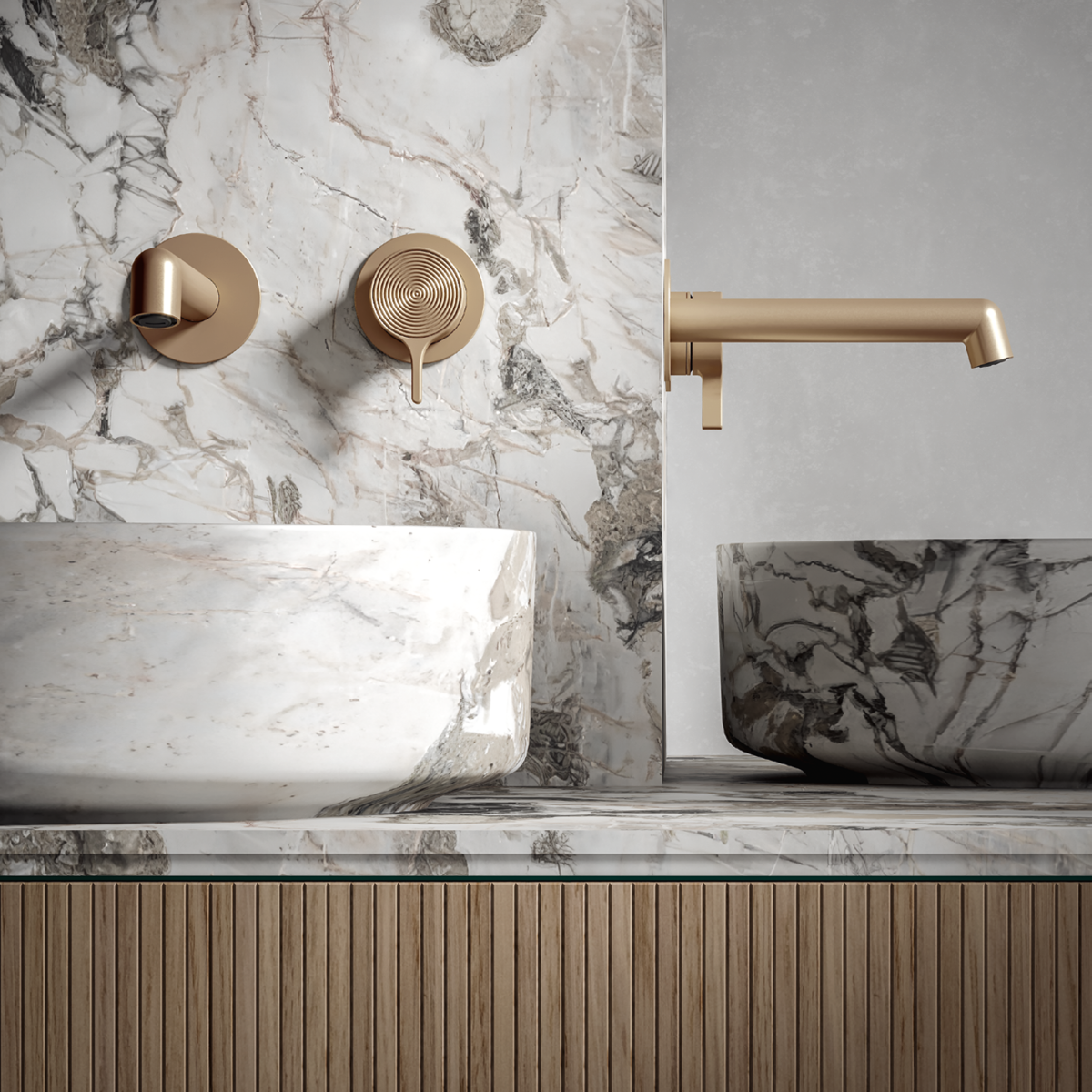 La sua allure light luxury la rende una collezione che trova il suo ambiente ideale in bagni di prestigio e crea soluzioni molto raffinate in abbinata a tinte tenui e rivestimenti ricercati come il marmo. Preziosa ma estremamente contemporanea, in libertà può diventare protagonista anche di bagni dallo stile minimal, che vogliono trovare nella scelta della rubinetteria il loro accento di carattere.